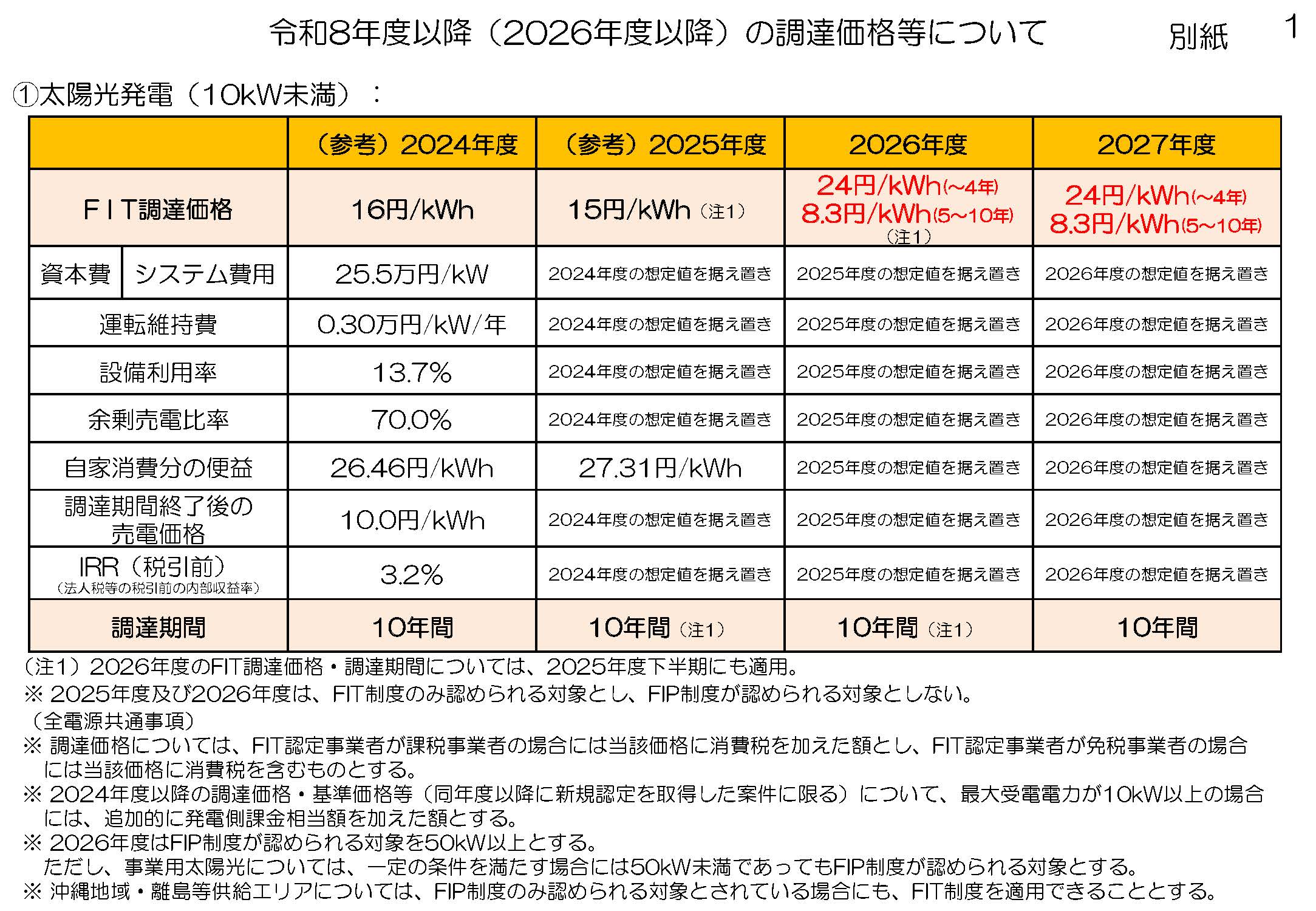 ① 太陽光発電(10kW未満) 2026年度と変更なし