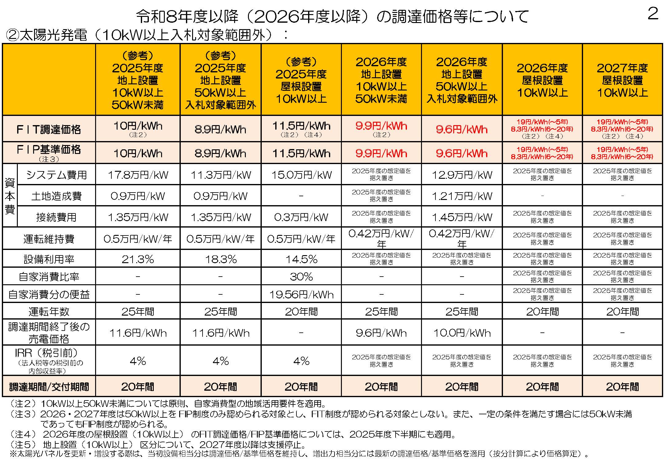 *屋根設置 10kW以上 FIT/FIP 2026年度と変更なし